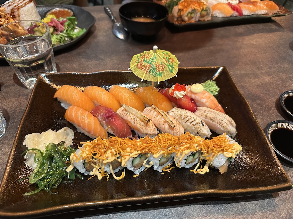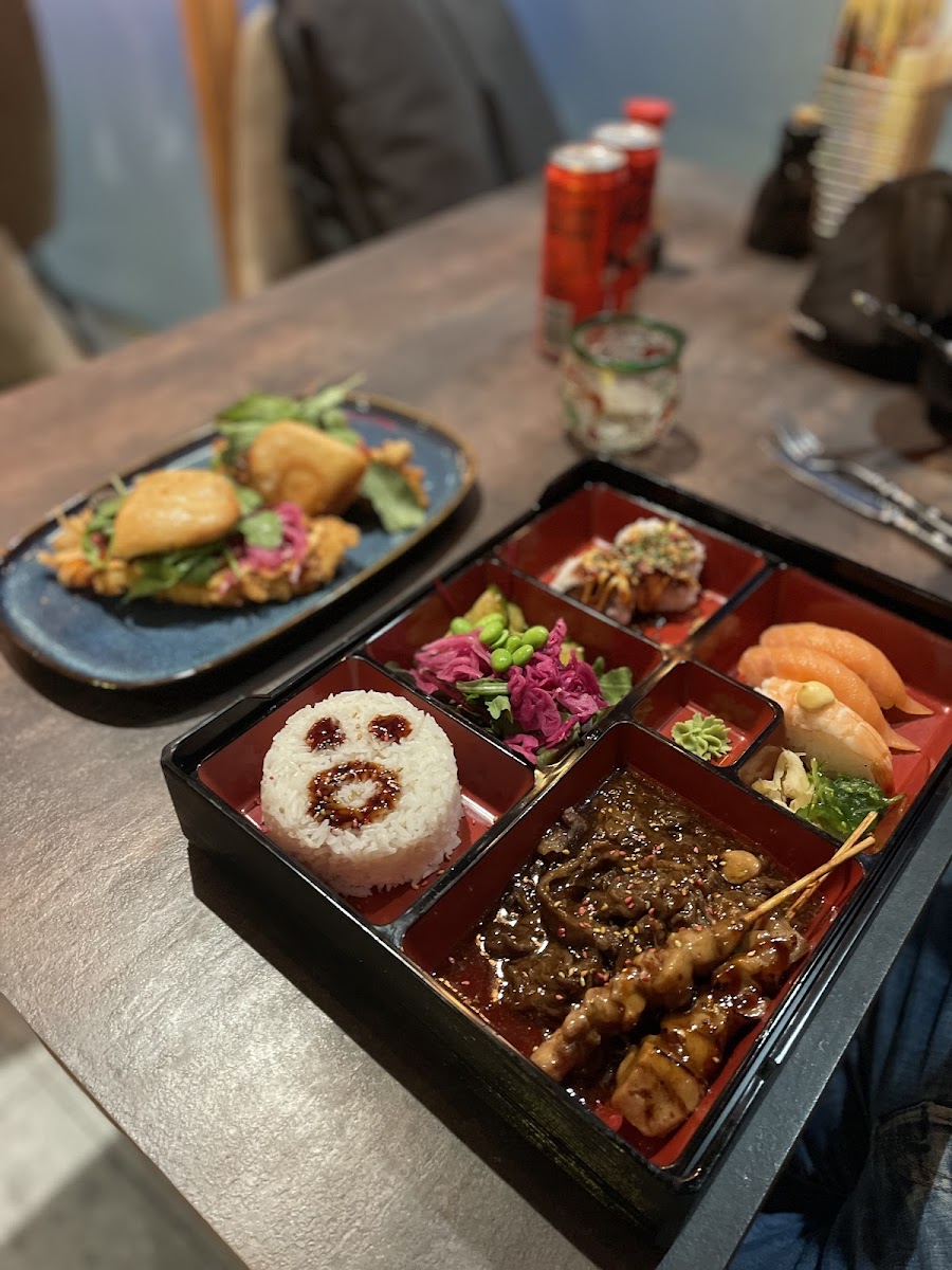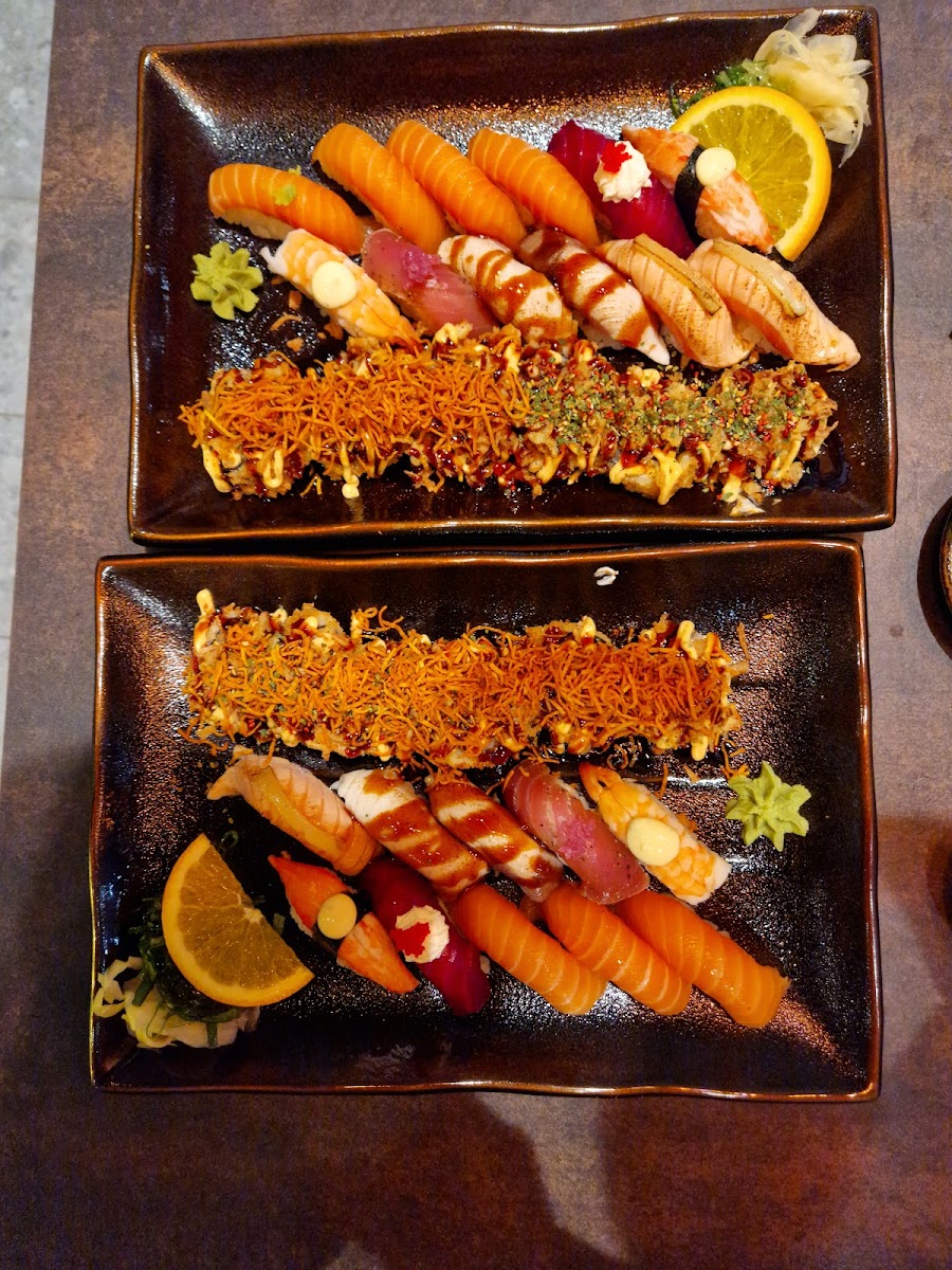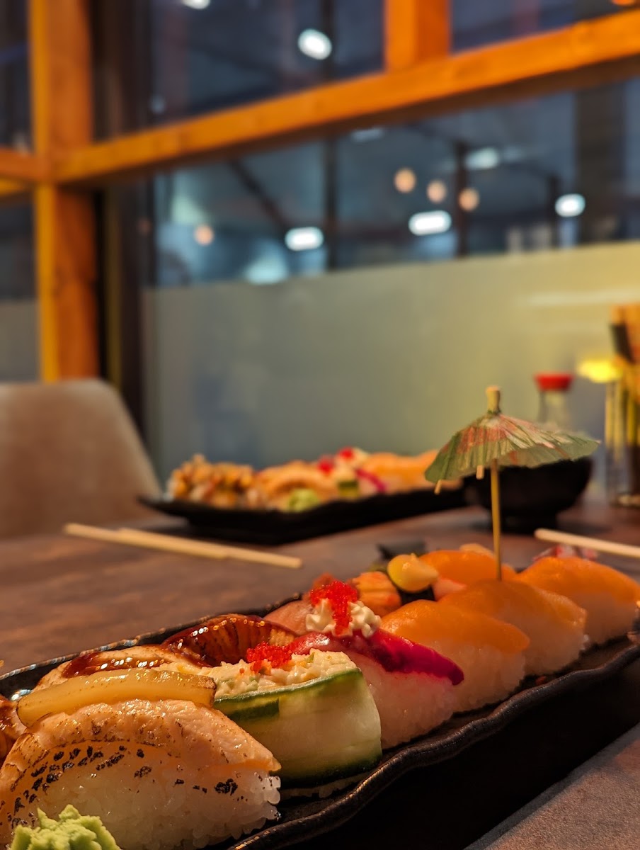 Riktigt bra Sushi, stora bitar så skulle nog säga man får ett par extra bitar när man beställer. Lite rolig och oväntad lokal med tanke på var den ligger och man kan kika ut på.